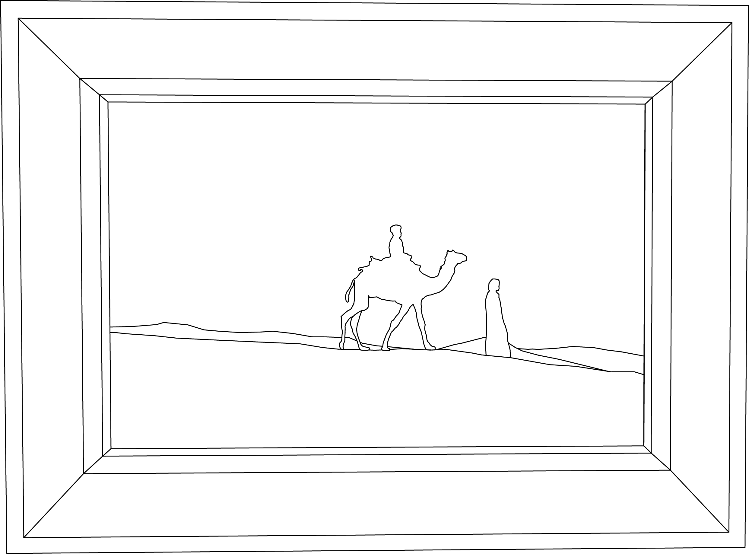 Two Figures In Patchwork Clothing Move Forward Via Camel