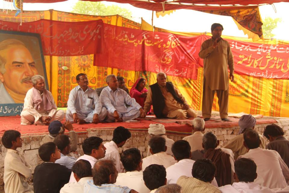 During the 1970s, a peasant movement emerged in Dera Saigol, a village about 30 kilometers from Lahore, Pakistan. Alongside political organizers from the Maoist Mazdoor Kissan (Workers and Peasants) Party, people in the village came together to reject the exploitative tenancy system, and claim the land for those who cultivated it. I travelled to Dera Saigol in May with Huma Safdar, Shafqat Hussain, and Muhammad Riaz as part of the Sangat, a progressive theatre and art collective that developed political education and performance based on vernacular and marginal literary traditions. We had been invited to sing, to share songs from 16th century rural rebellions and contemporary anthems by revolutionary poets. We parked our car by a field full of nodding stalks of yellow mustard, and walked over to the venue: a small courtyard inside a home, with a crowd of about forty sprawled casually on mats and day beds that were arranged in a circle. The gathering turned into an exchange, as the people of Dera Saigol also began to sing for us. In this intimate meeting, protest songs and poetry served to surface the collective memory of a political struggle.