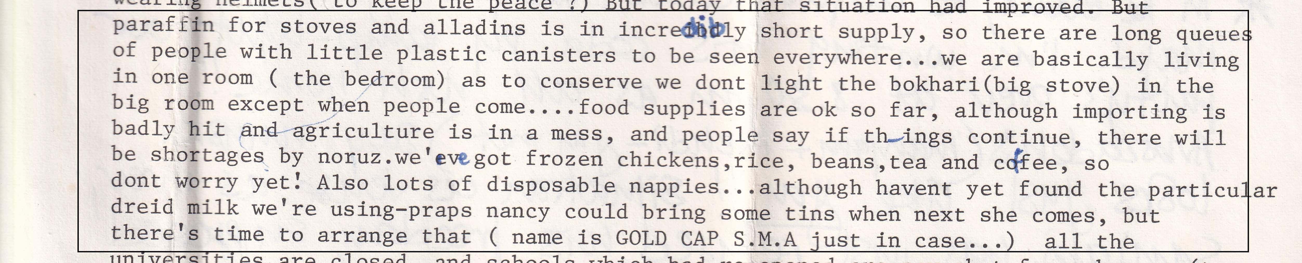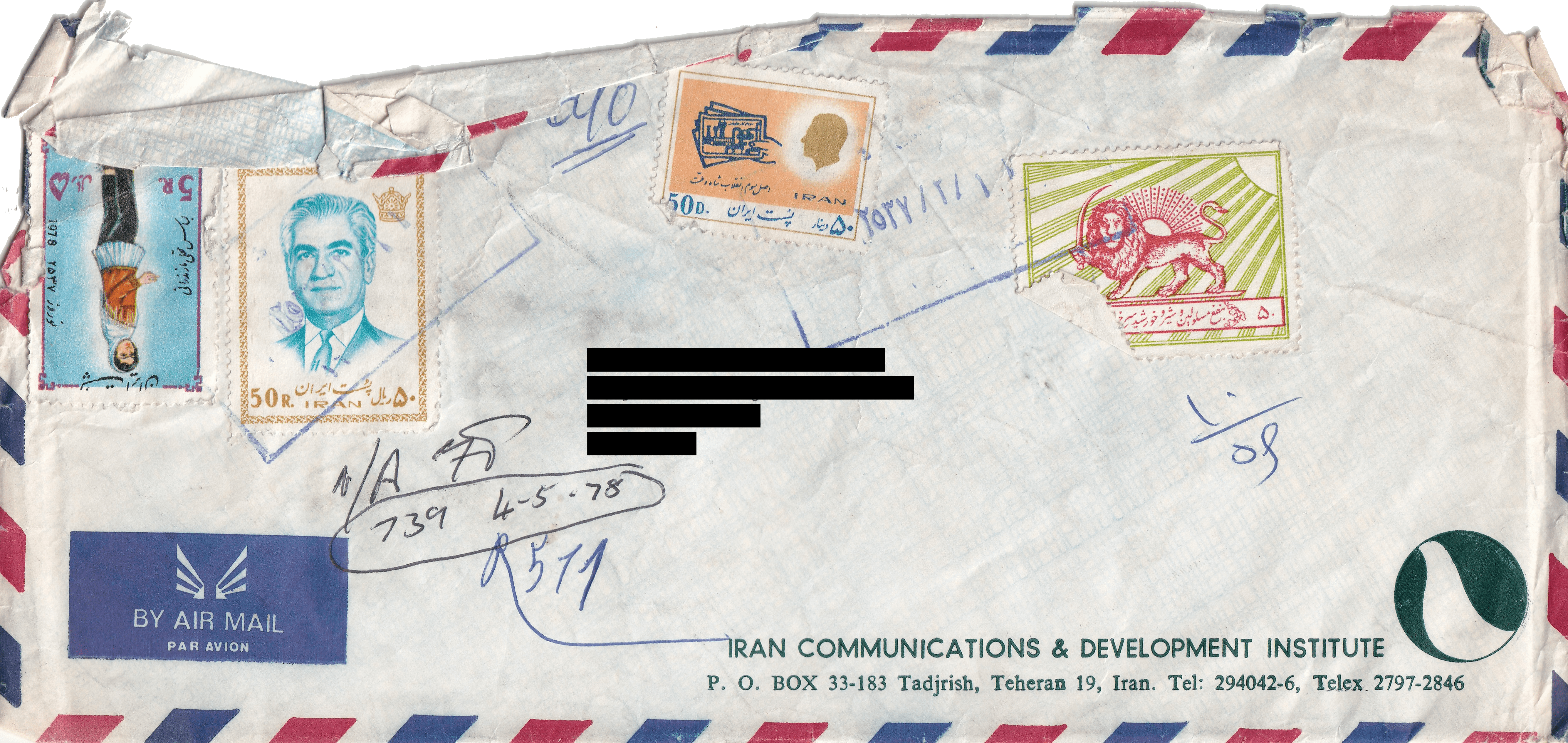 After the sudden death of my mother on the second-to-last day of the year 2022 I inherited many of her things. Amongst the carpets, clothes, candlesticks and other objects that made up her life and her home were a collection of letters and photographs that document an intimate period of her own life and of irrevocable change in Iran. It comprised a shoebox full of photos, a fraying beige folder packed full of postcards, stamped envelopes and letters typed on blue airmail paper and an A4 manila envelope of faded photo wallets with film negatives spilling out of them. Together the materials document the five years she lived in Iran between 1976-1980. During this time, she adapted to a new country, set up home with her husband and had her first child. She also participated in a revolution.